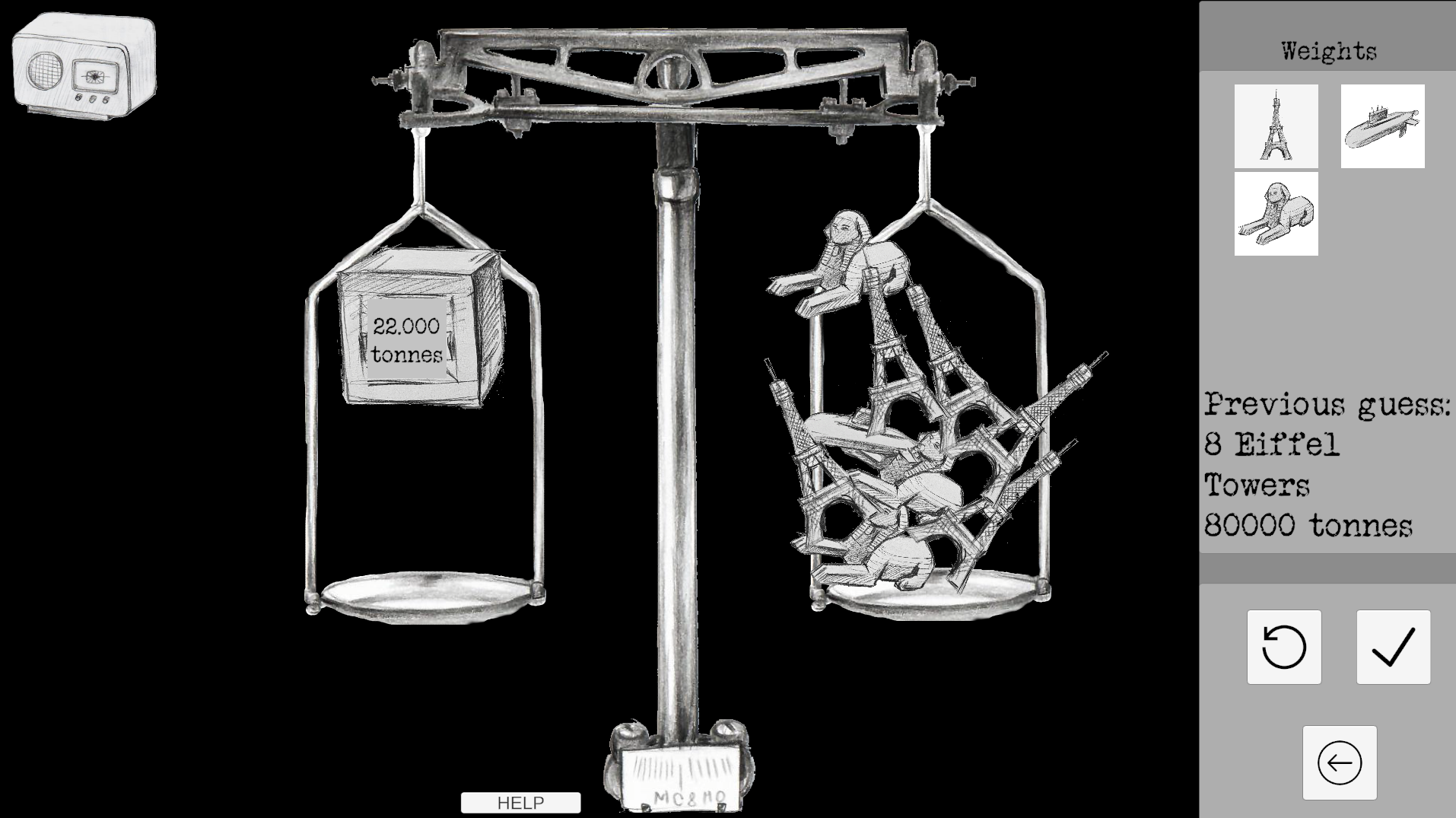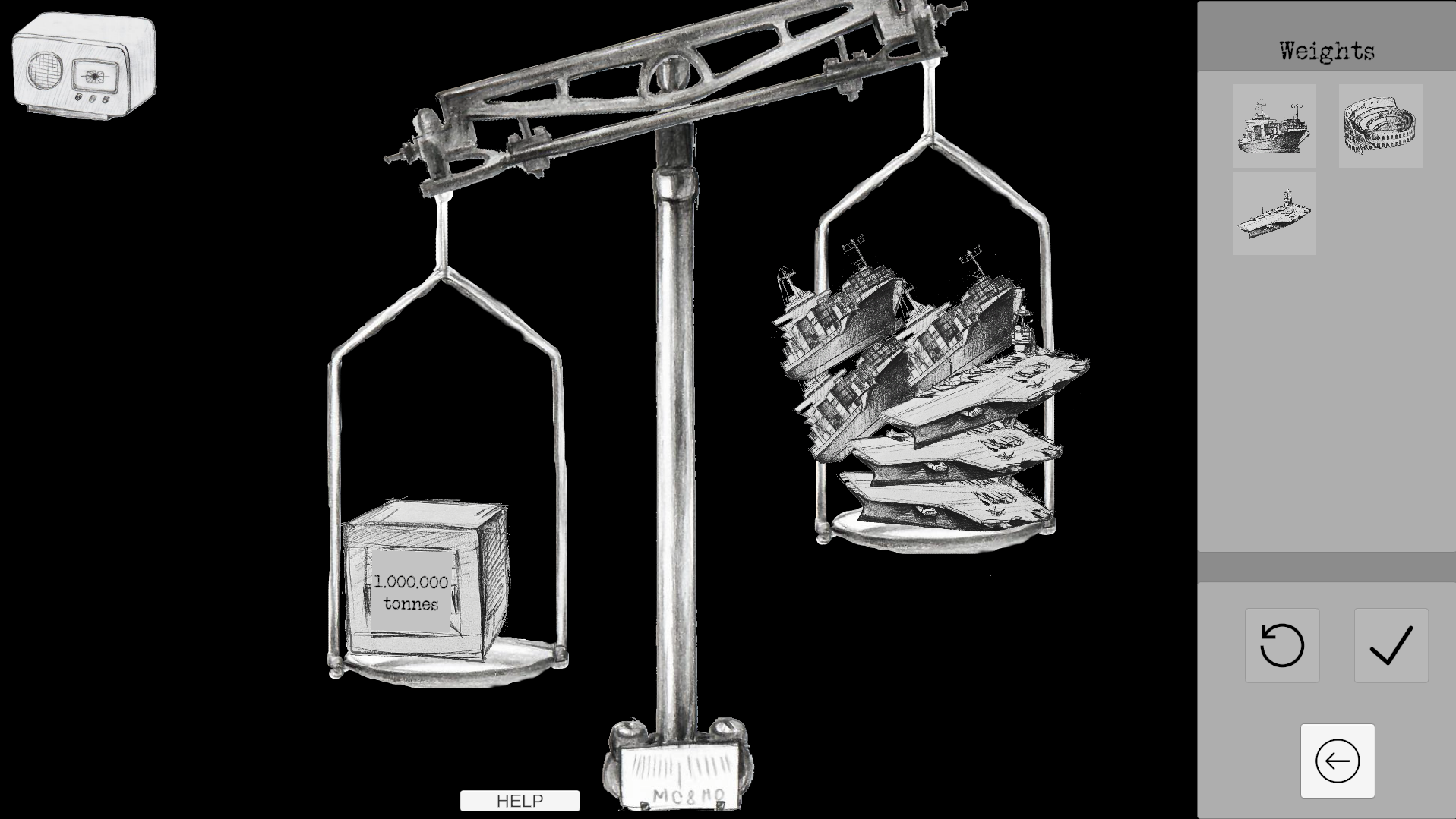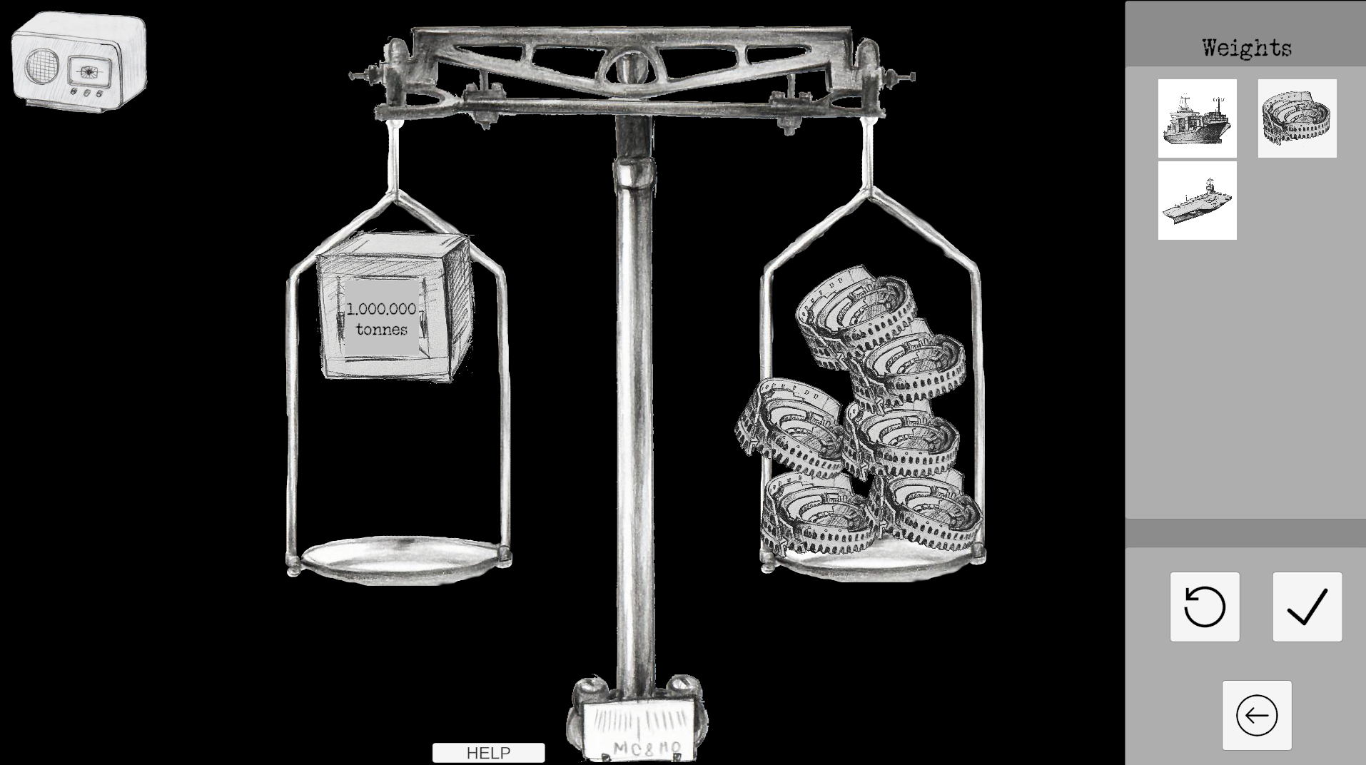 Click on a button to spawn an object on the right side of the scale. Try and balance out the weight on the left!